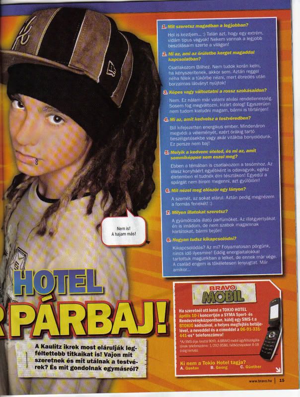 Tegnap Bill s Tom a ZDF-en Jonathan B. Kernernl jrt. Iszonyat j kpeket raktam fel errl. Aztn egy kis inf a turnrl ha tovbb kattintasz s mg egy rdekes felmrs. Termszetesen Bravo scan. Ja s egy kis szemlyes. rlk Jenyke, hogy visszatrtl!!!!